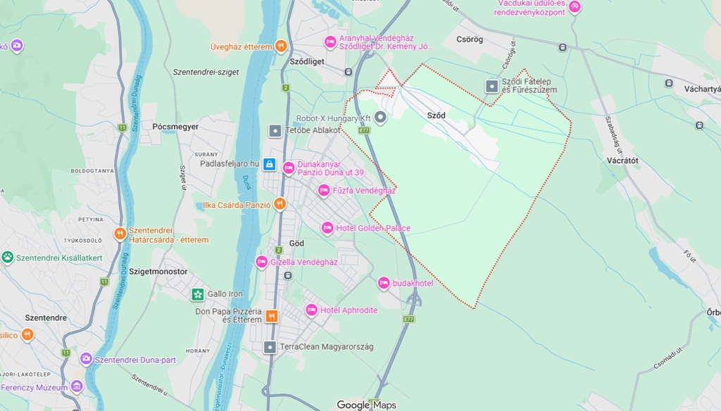 Pest megye Sződ, M2 autópályához közel, M0 autópálya csomóponttól 15km-re, gödi Samsung gyártól mindössze 4-5km-re, össztömeg korlátozás nélküli zónában 4.6 HA gazdasági, kereskedelmi, szolgáltató övezetbe tartozó fejlesztési telek eladó!